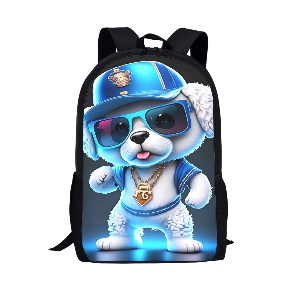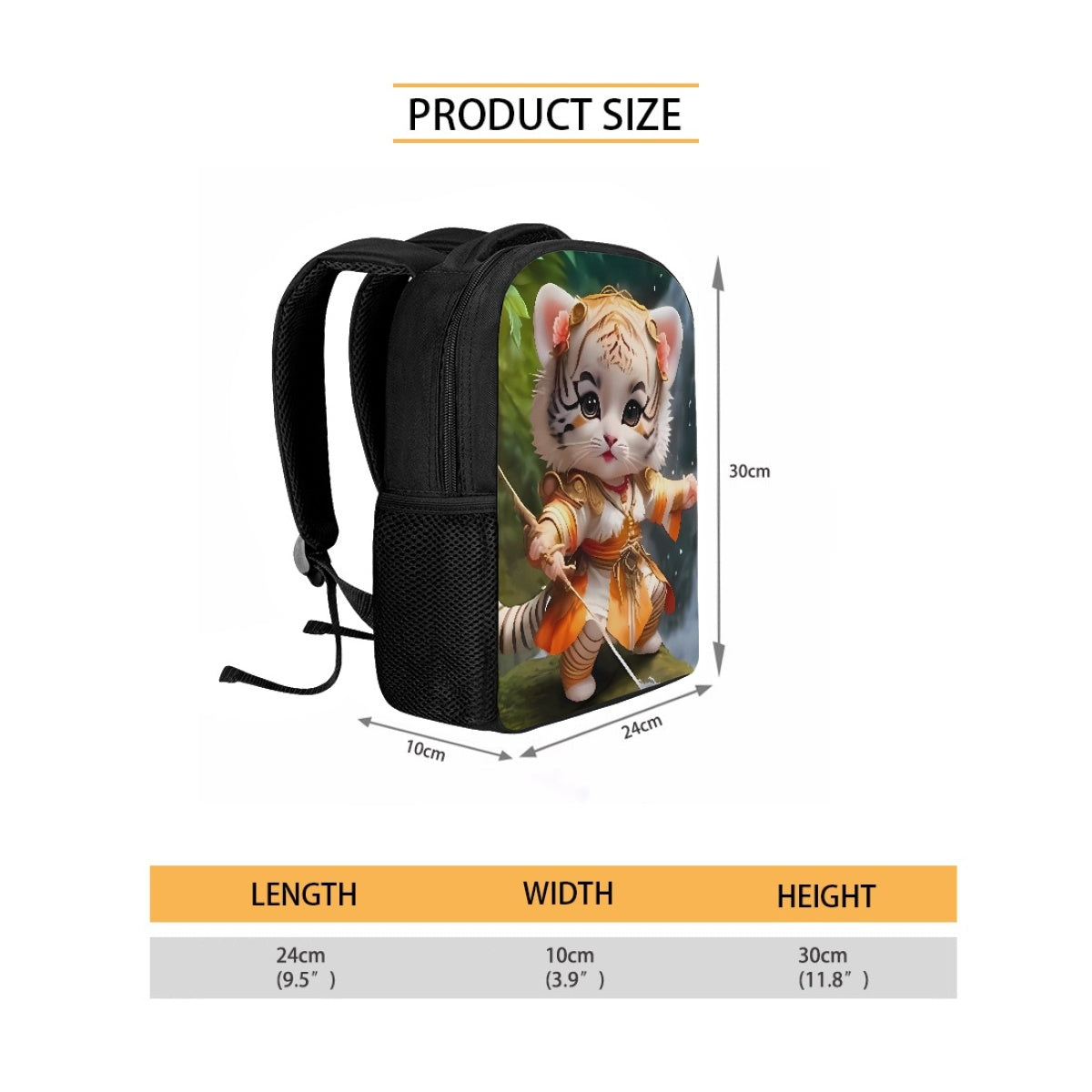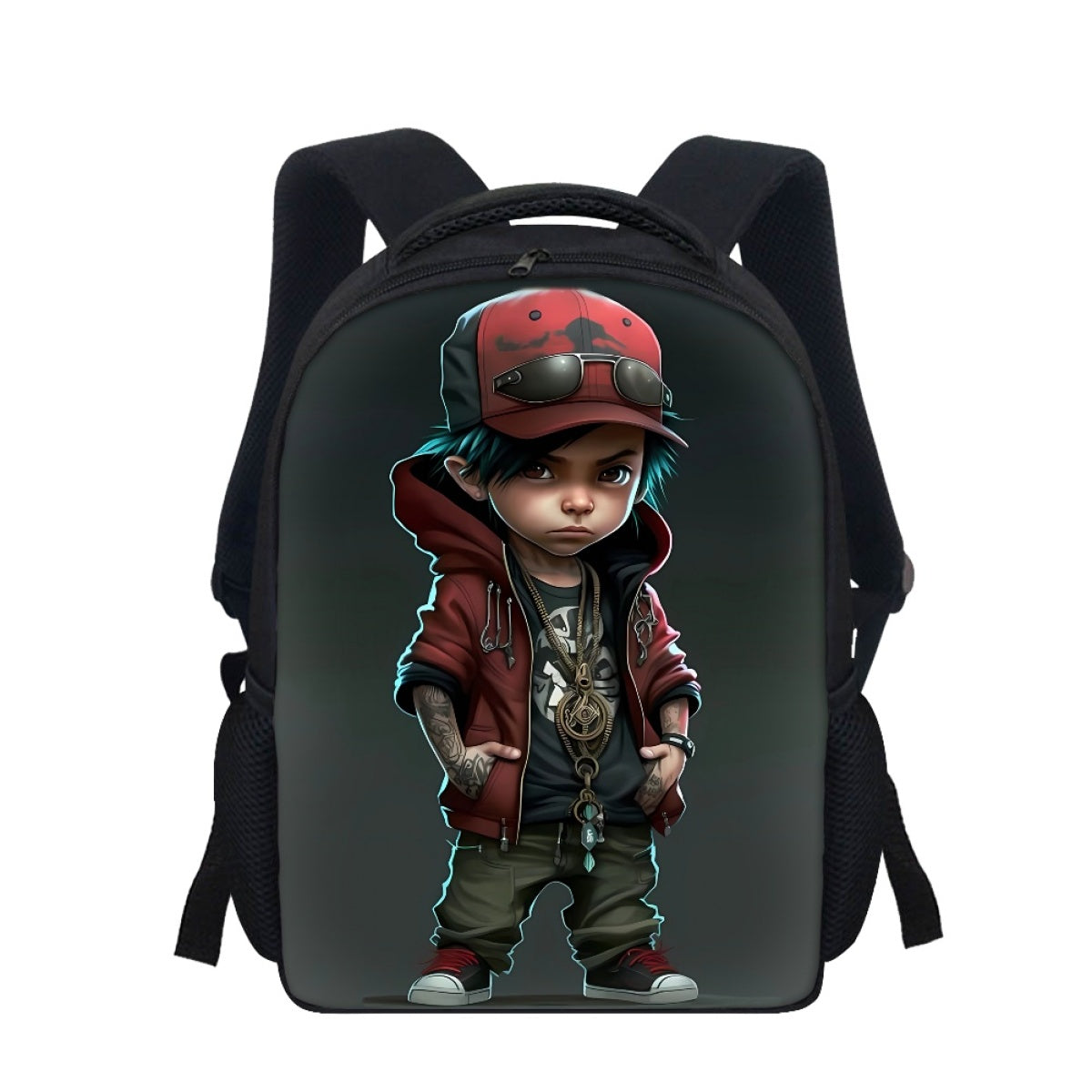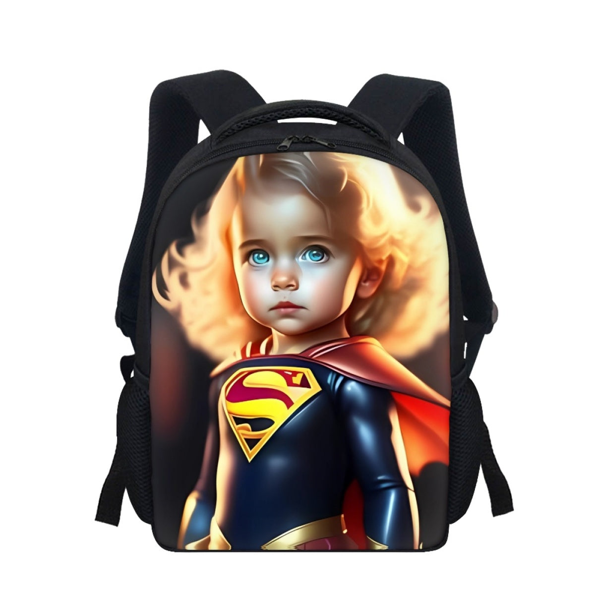 This custom 12" backpack is designed for kids, crafted from durable, water-resistant polyester with felt and canvas accents on the front. It features a spacious main compartment, an inner pocket secured by double nylon zippers, two side mesh pouches, and an additional zipper pocket. Lightweight yet roomy, it offers breathable comfort with sponge mesh padding and adjustable, cushioned shoulder straps. Made from eco-friendly materials, this backpack is ideal for school, daily use, or short trips, combining durability, practicality, and style in a waterproof, casual design.