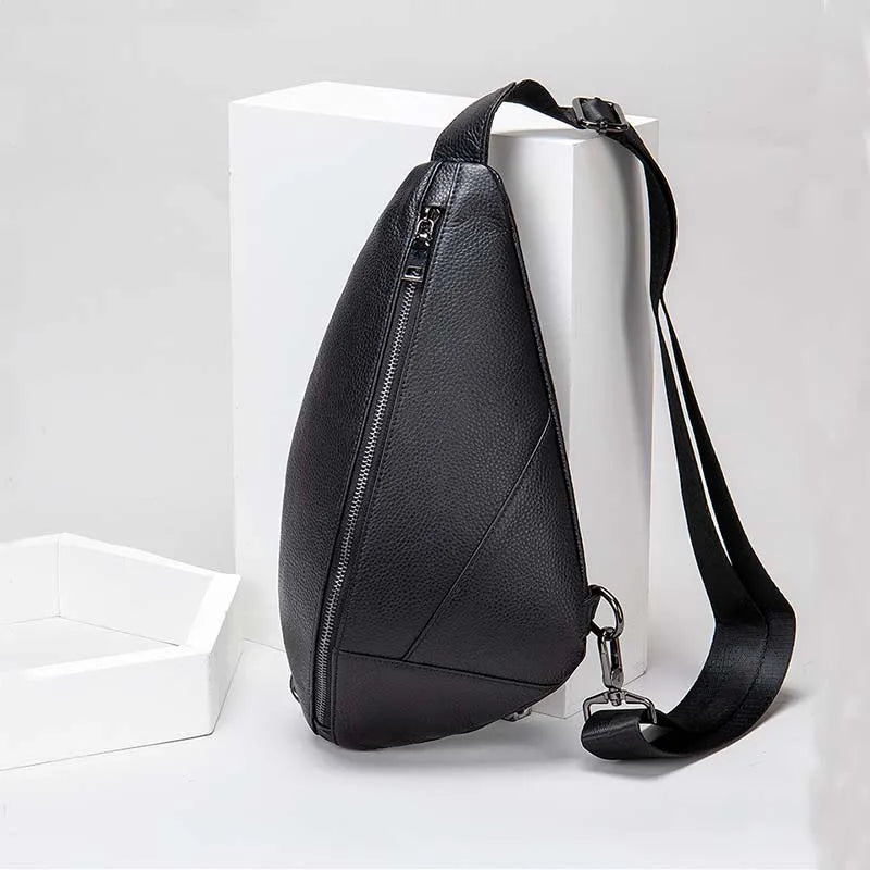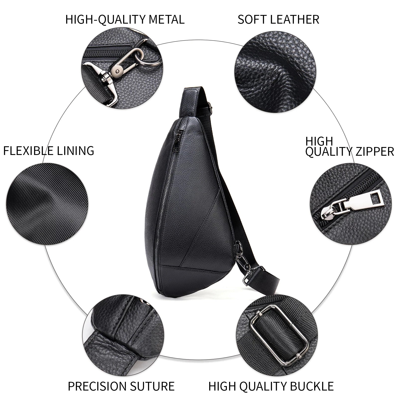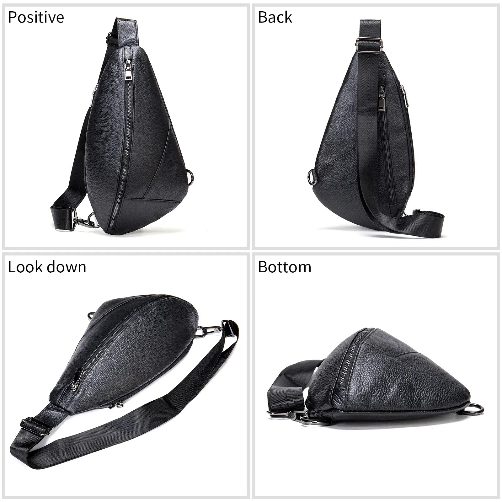Luufan Genuine Leather Men's Chest Bags Soft Top Layer Cross Body Bag Black Male Cowhide Sling Bag Messager Single Summer Pouch